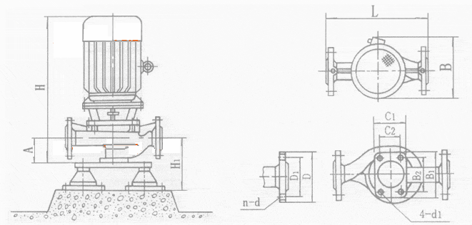ISG、IRG、GRG、IHG、YG、ISHB型外形安裝尺寸表: