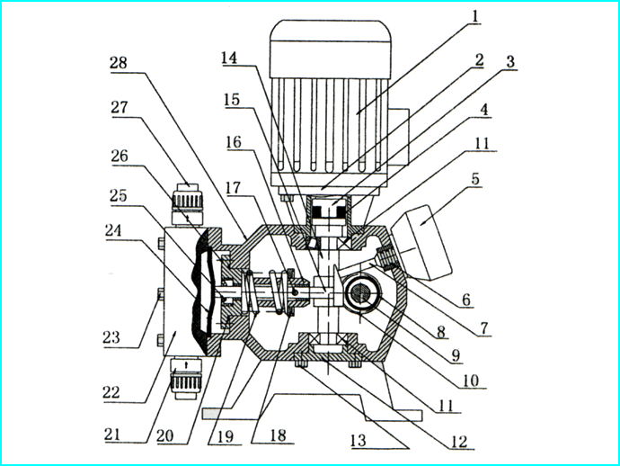 | 1 | 電機 | 8 | 偏心輪軸承 | 15 | 頂桿 | 22 | 泵頭 |