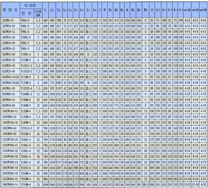 | 65ZW65-25 | 65 | 25 | 11 | 2900 | 52 | 3.0 | 5.5 | 2 | 240 |